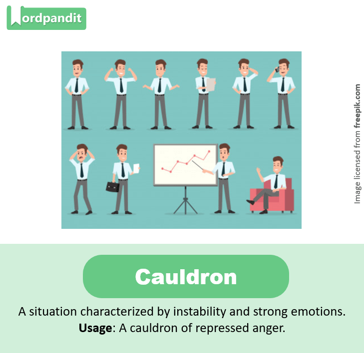 • A large metal pot with a lid and handle, used for cooking over an open fire.