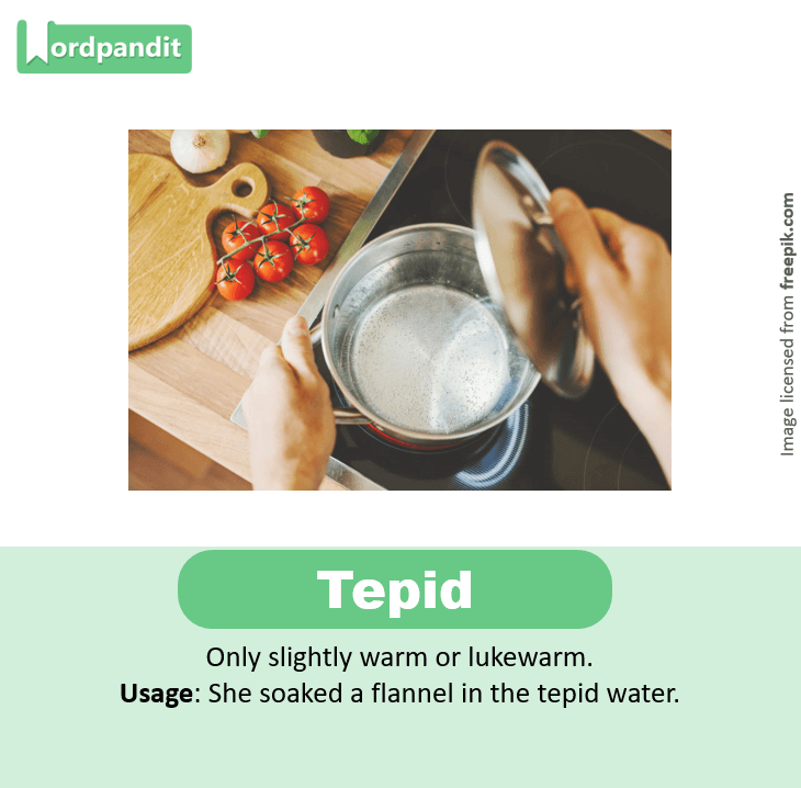 Usage: She soaked a flannel in the tepid water.
