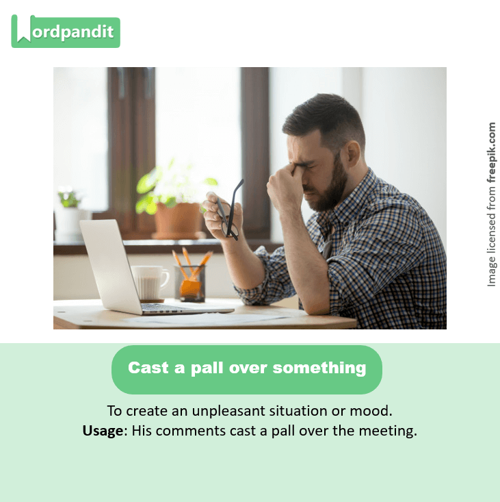 Usage: His comments casted a pall over the meeting.
