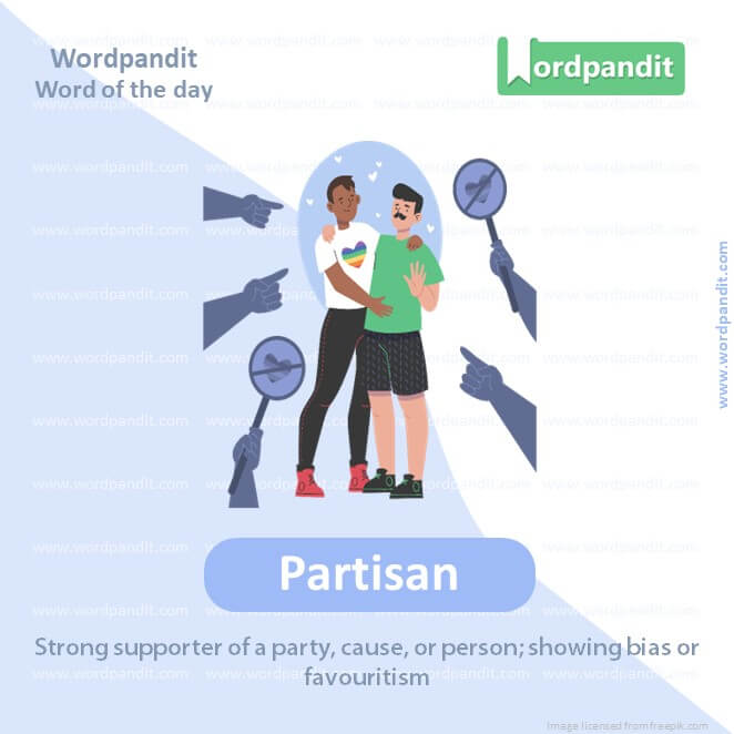 Meaning: Strong supporter of a party, cause, or person; showing bias or favouritism.