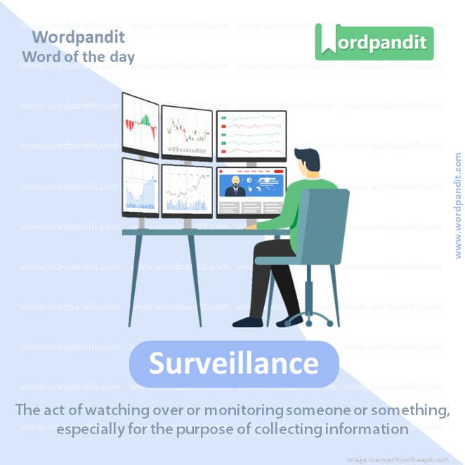 Meaning: The act of watching over or monitoring someone or something, sespecially for the purpose of collecting information.