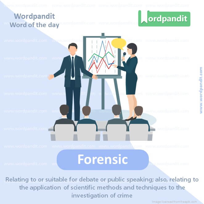 Meaning: Relating to or suitable for debate or public speaking; also, relating to the application of scientific methods and techniques to the investigation of crime.