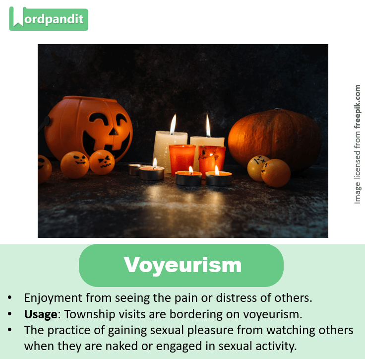 • The practice of gaining sexual pleasure from watching others when they are naked or engaged in sexual activity.