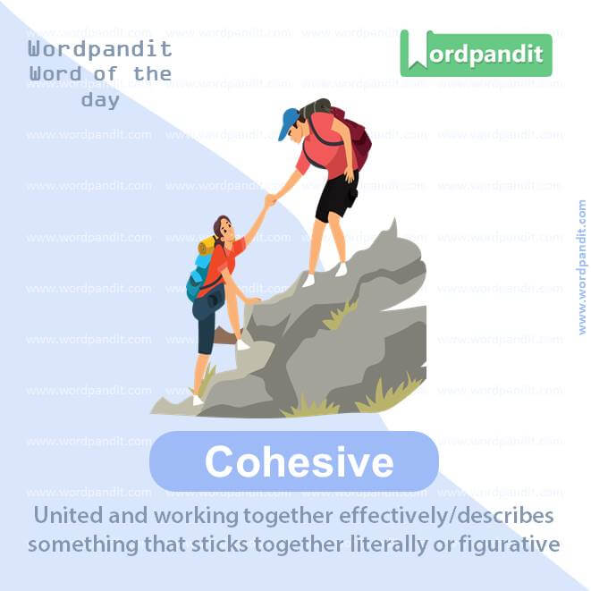 Meaning: United and working together effectively/describes something that sticks together literally or figurative.