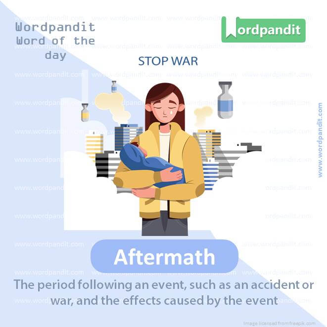 Meaning: The period following an event, such as an accident or war, and the effects caused by the event.