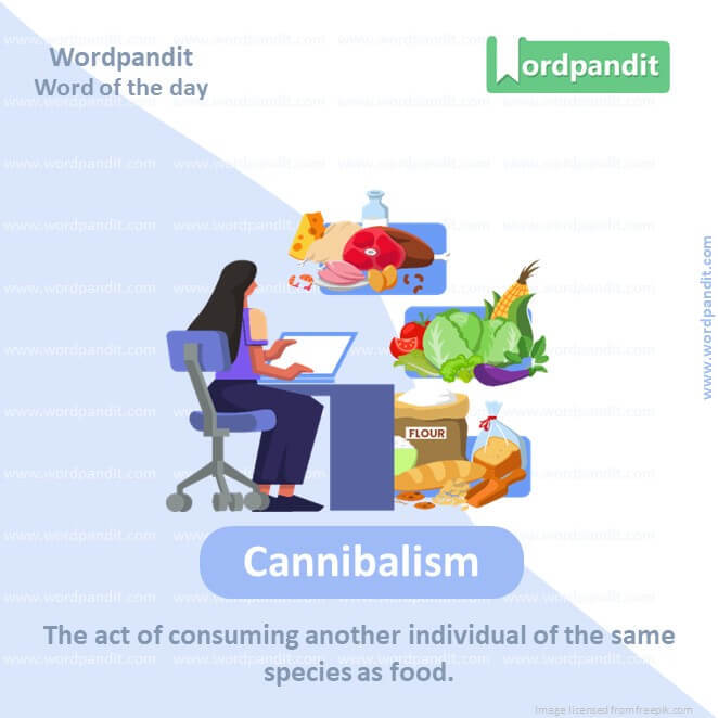 Meaning: The act of consuming another individual of the same species as food.