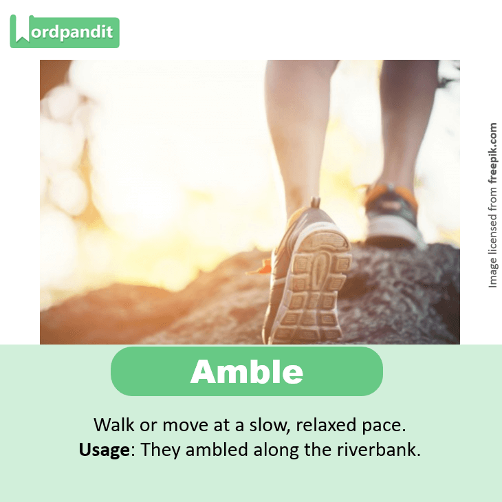 Usage: They ambled along the riverbank holding hands.