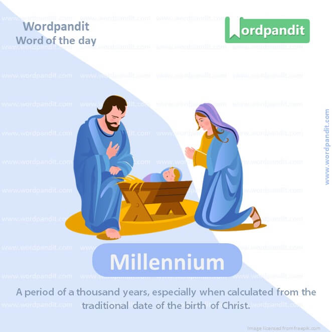 Meaning: A period of a thousand years, especially when calculated from the traditional date of the birth of Christ.