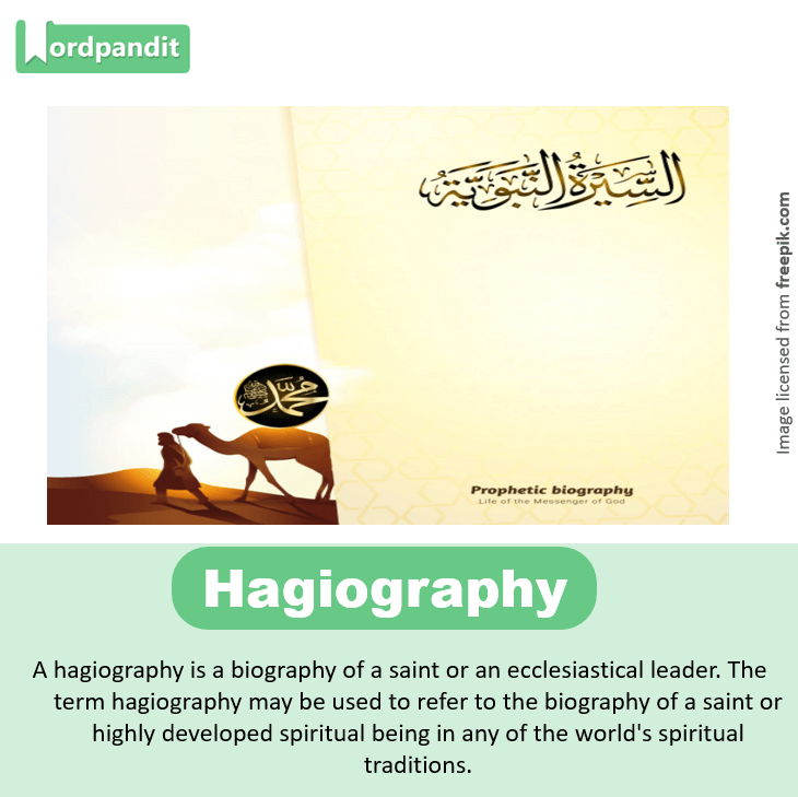• A hagiography is a biography of a saint or an ecclesiastical leader. The term hagiography may be used to refer to the biography of a saint or highly developed spiritual being in any of the world’s spiritual traditions.