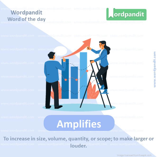 Synonyms: Magnifies, Intensifies, Augments, Boosts, Enhances, Expands, Escalates.