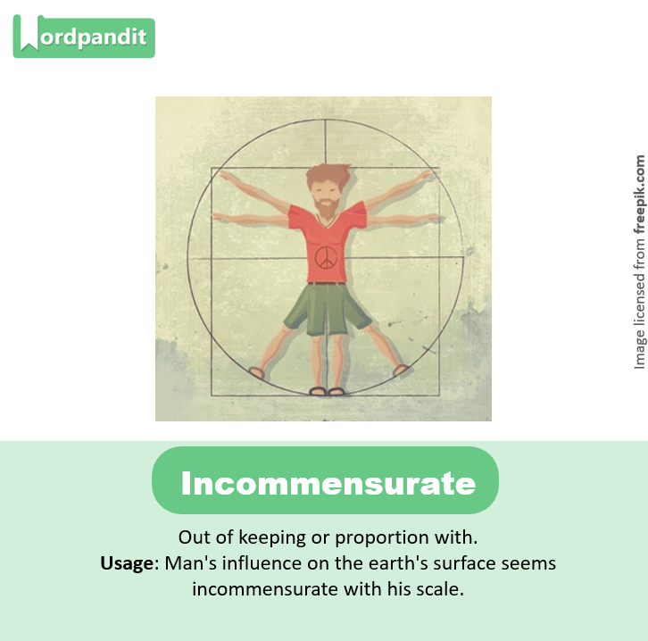 • Out of keeping or proportion with.