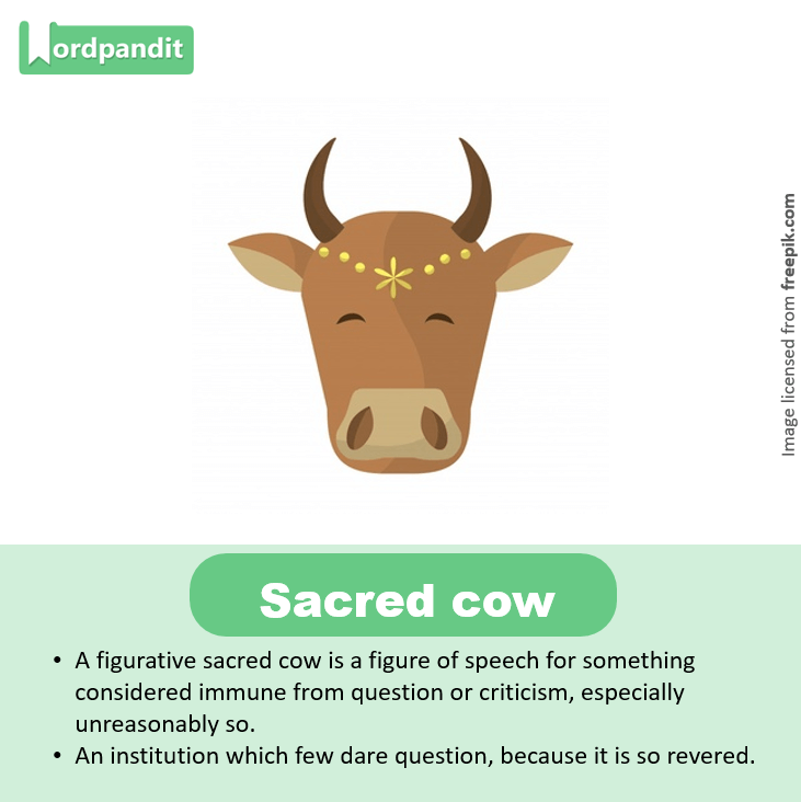 • A figurative sacred cow is a figure of speech for something considered immune from question or criticism, especially unreasonably so.