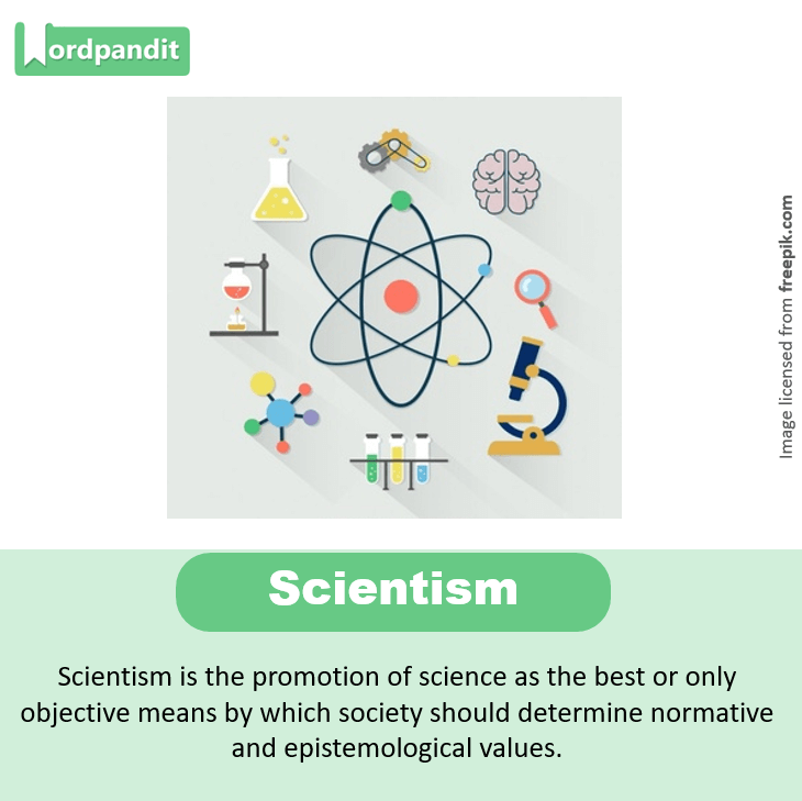 • Scientism is the promotion of science as the best or only objective means by which society should determine normative and epistemological values.