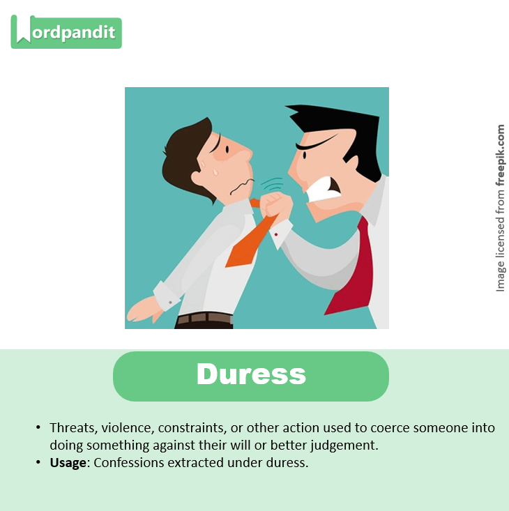 • Threats, violence, constraints, or other action used to coerce someone into doing something against their will or better judgement.