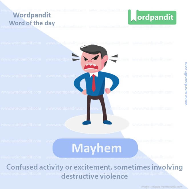 Synonyms: Anarchy, commotion, destruction, fracas, havoc, pandemonium, violence, disorder, trouble.