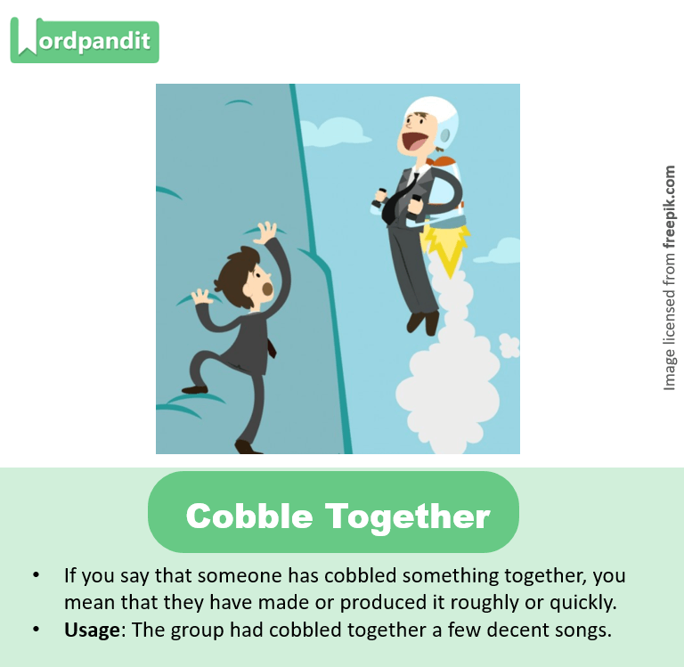 • If you say that someone has cobbled something together, you mean that they have made or produced it roughly or quickly.