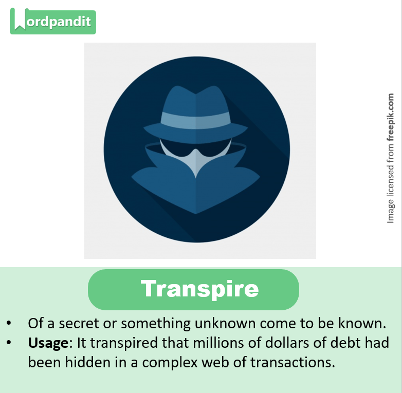Usage: It is transpired that millions of dollars of debt had been hidden in a complex web of transactions.