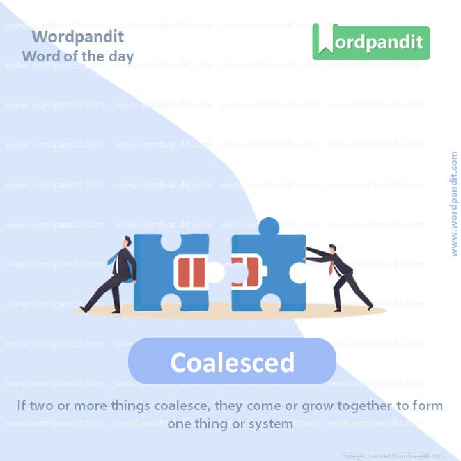 Meaning: If two or more things coalesce, they merge to form one thing or system.