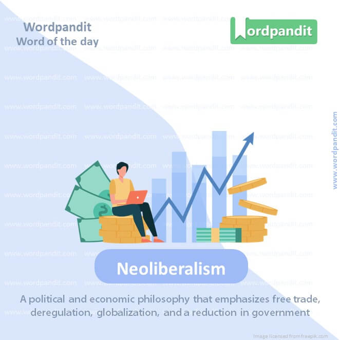 Meaning: A political and economic philosophy that emphasizes free trade, deregulation, globalization, and a reduction in government