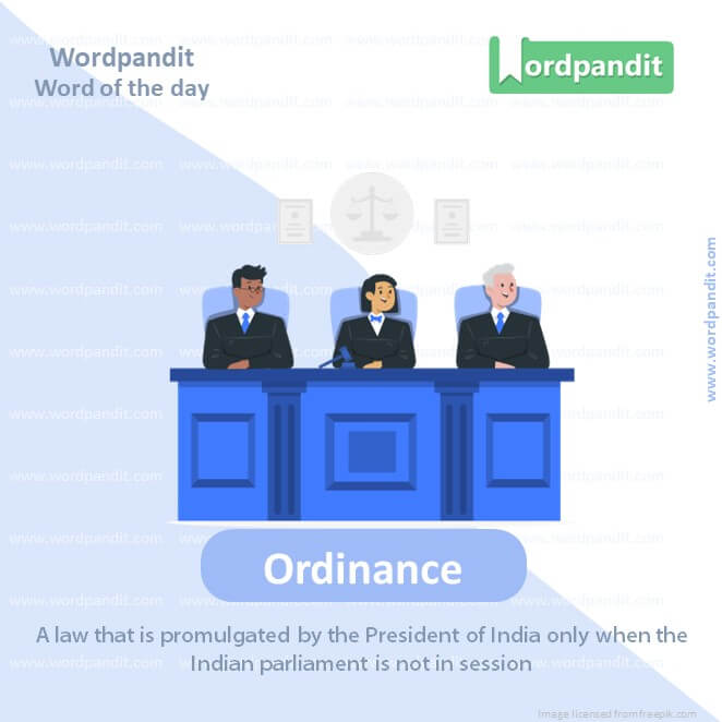 Meaning: A law promulgated by the President of India only when the Indian parliament is not in session.