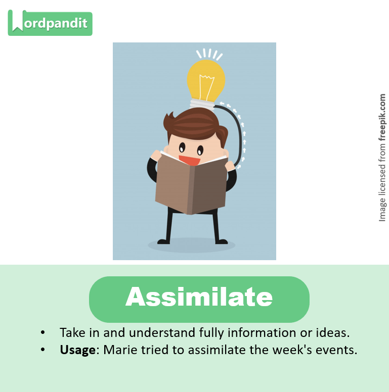 Usage: Marie tried to assimilate the week’s events.