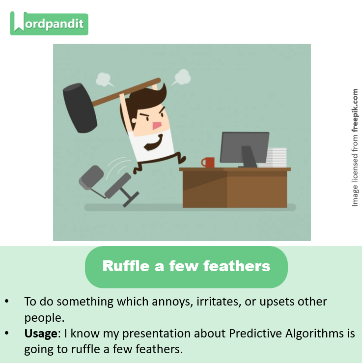 Usage: I know my presentation about demerits of Demonetisation is going to ruffle a few feathers.