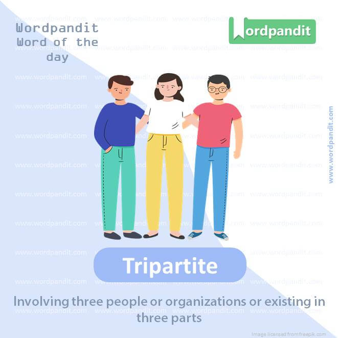 Meaning: Involving three people or organizations or existing in three parts.