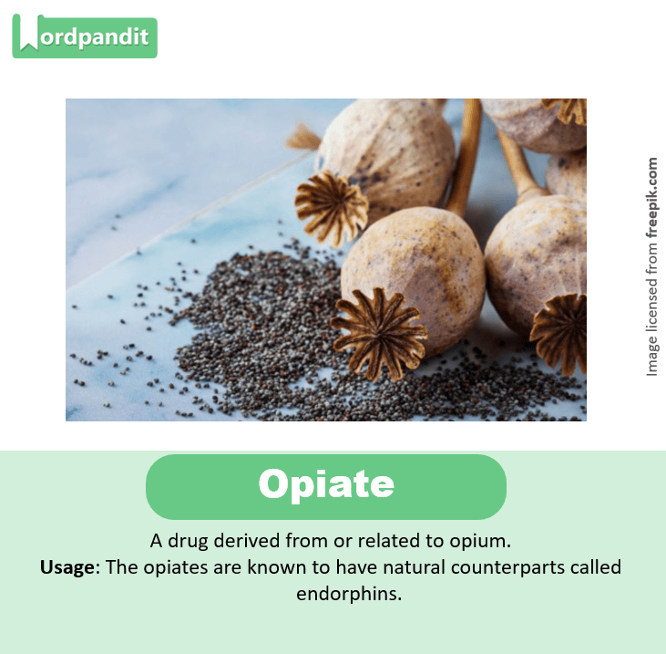 Usage: The opiates are known to have natural counterparts called endorphins.