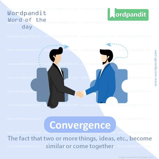Meaning: The fact that two or more things, ideas, etc., become similar or come together.
