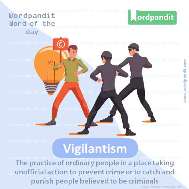 Meaning: The practice of ordinary people in a place taking unofficial action to prevent crime or to catch and punish people believed to be criminals.
