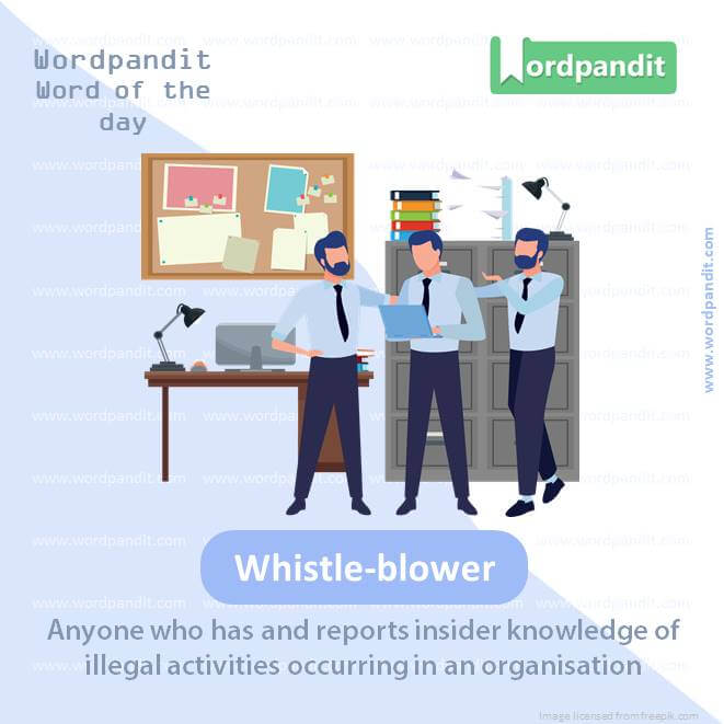 Meaning: Anyone who has and reports insider knowledge of illegal activities occurring in an organisation.