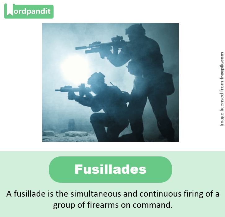 • A fusillade is the simultaneous and continuous firing of a group of firearms on command.
