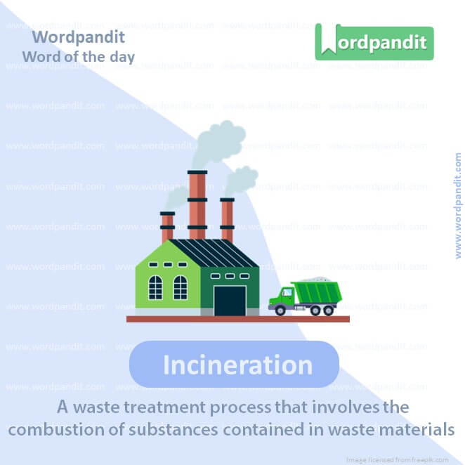 Meaning: A waste treatment process that involves the combustion of substances contained in waste materials.