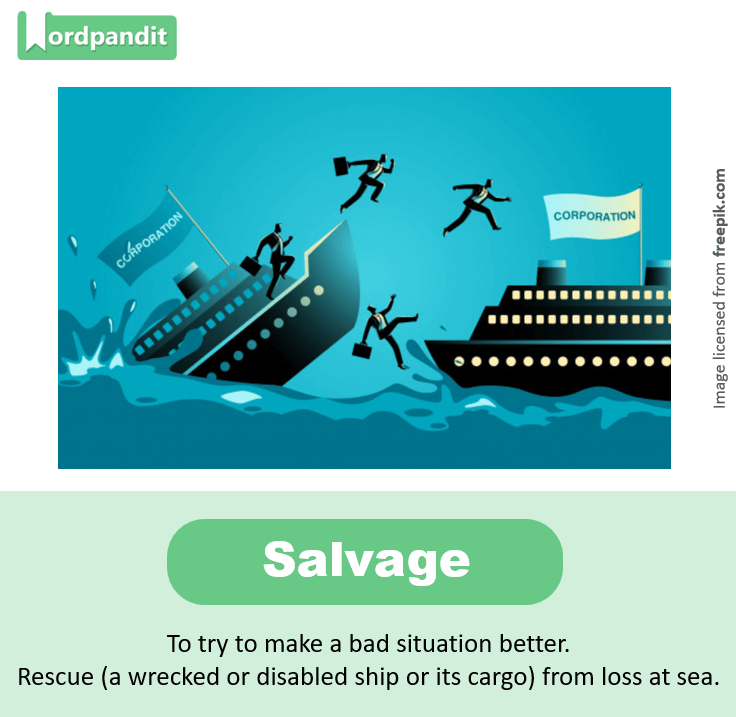 Usage: – After the fraud scandal he had to make great efforts to salvage his reputation.