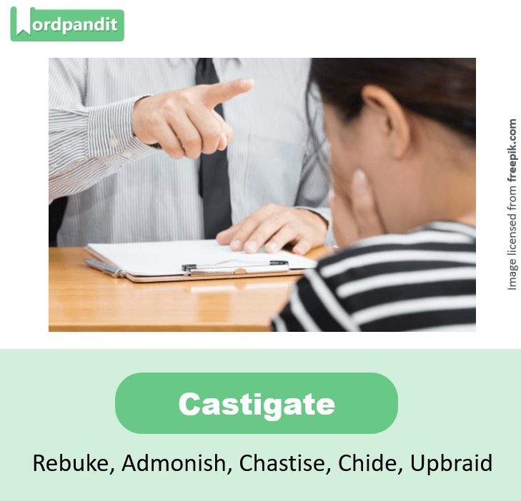 Synonyms: rebuke, admonish, chastise, chide, upbraid.