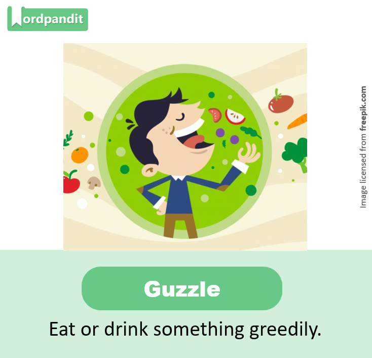 Synonyms: gobble up, gulp, eat greedily, eat hungrily, gourmandize on