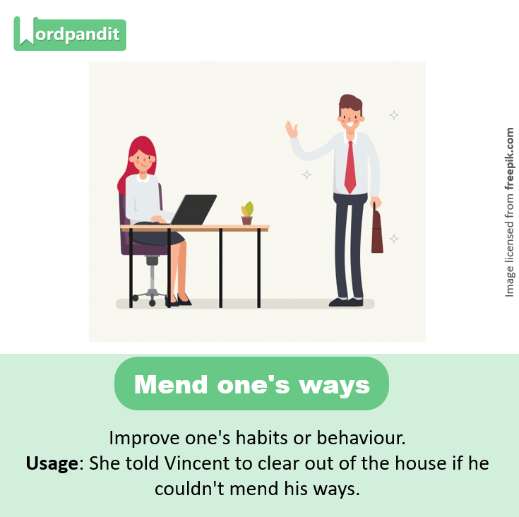 Usage: She told Vincent to clear out of the house if he couldn’t mend his ways.