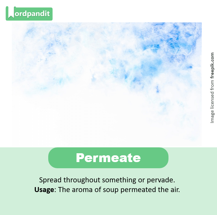 Usage: The aroma of soup permeated the air.