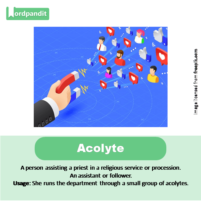 Usage: She runs the department through a small group of acolytes.
