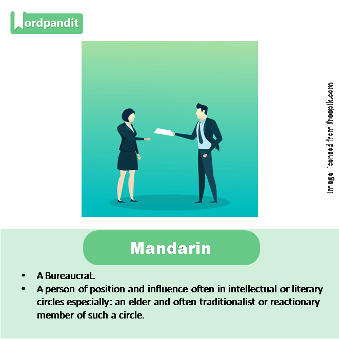 • a) A high public official of imperial China. The Mandarin was a bureaucratic class that was originally created to employ individuals worthy of working in government positions. Individuals could become Mandarins through Confucian exams that were designed to select individuals that were worthy of holding government positions. Once selected, they helped create laws and acted as a civil servant to the government.