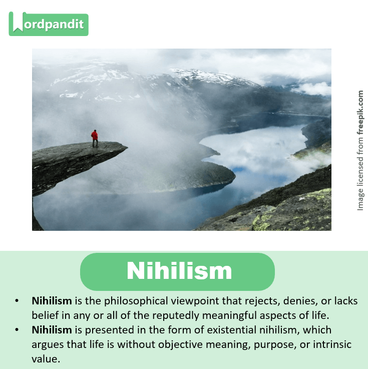 • Nihilism is the philosophical viewpoint that rejects, denies, or lacks belief in any or all of the reputedly meaningful aspects of life.
