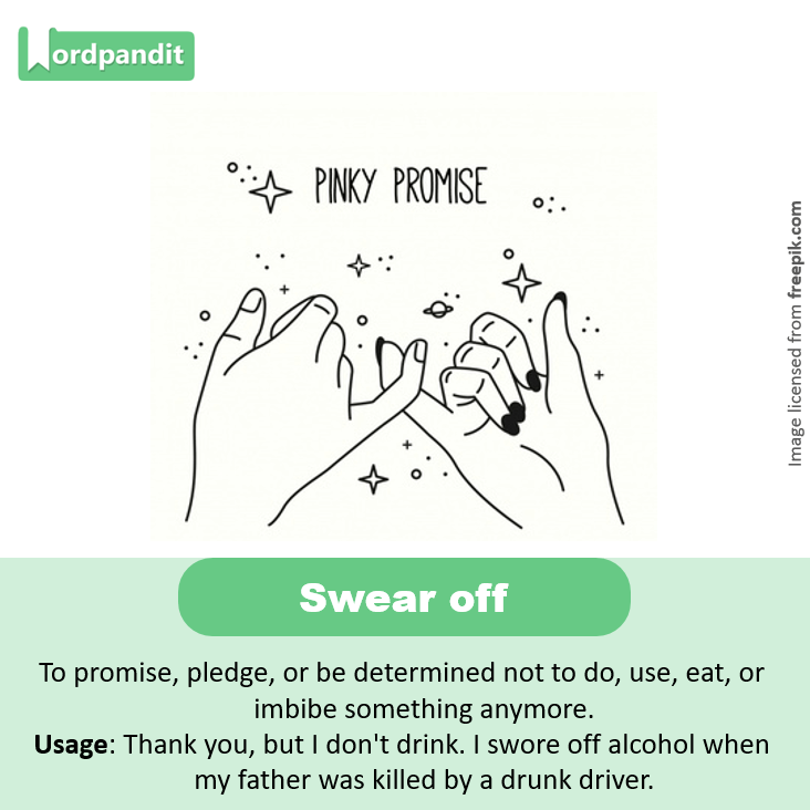 Usage: Thank you, but I don’t drink. I swore off alcohol when my father was killed by a drunk driver.