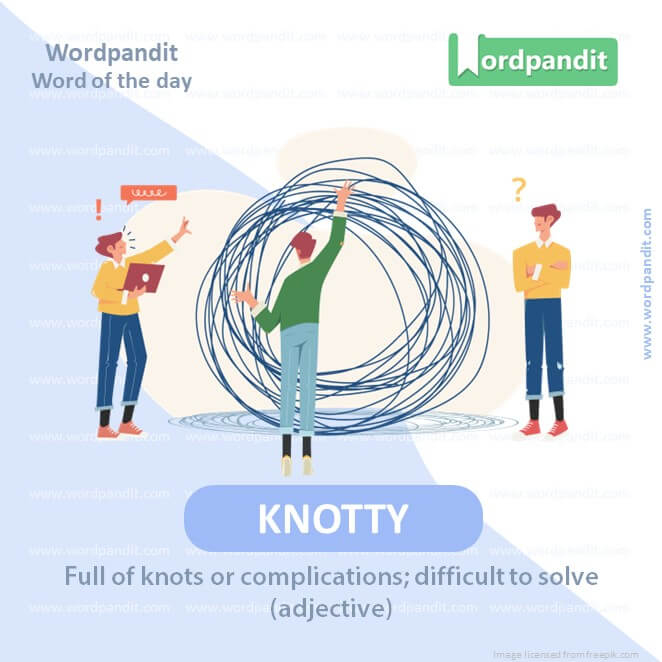 EXPLANATORY PARAGRAPH: Imagine a rope with lots of tight loops and twists that make it hard to untangle. That’s what “knotty” means. It can also mean a problem or situation that is tricky and hard to solve.