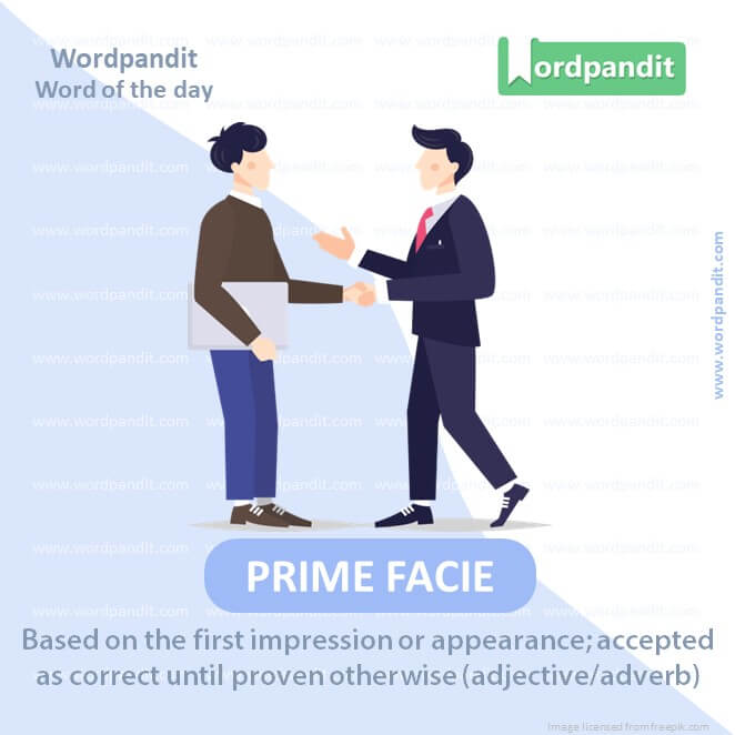 MEANING: Based on the first impression or appearance; accepted as correct until proven otherwise (adjective/adverb).