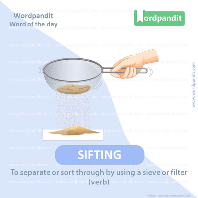 EXPLANATORY PARAGRAPH: Imagine you have a toy that lets sand fall through tiny holes but keeps the big rocks out. That’s like “sifting”. When you’re sifting something, you’re separating the fine parts from the bigger ones.