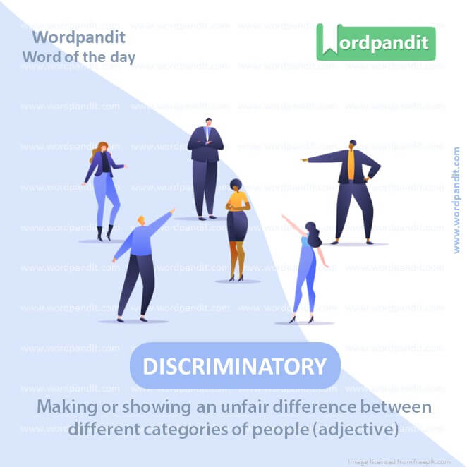 MEANING: Making or showing an unfair difference between different categories of people. (adjective)