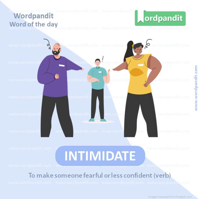 EXPLANATORY PARAGRAPH: Imagine someone tries to scare you so that you do what they want, like a bully at school making a scary face so you give them your candy. That’s what “intimidate” means.