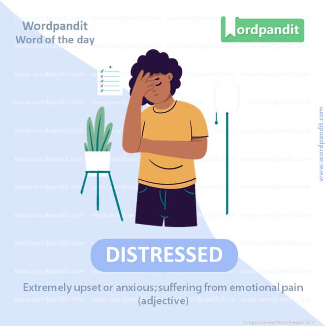 MEANING: Extremely upset or anxious; suffering from emotional pain (adjective).
