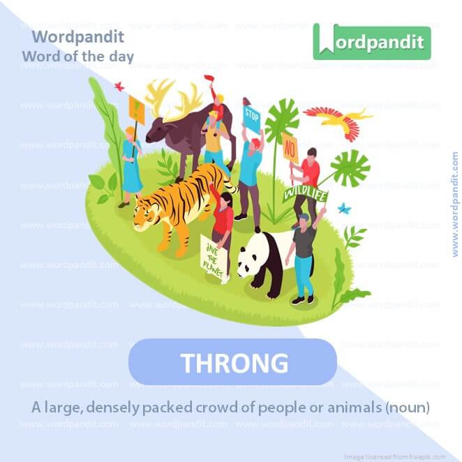EXPLANATORY PARAGRAPH: Imagine going to a place where there are so many people, like a lot of kids at a super fun birthday party! That’s what we call a “throng.” A throng means a really, really big group of people all together in one place, maybe to watch a parade or be at a concert.