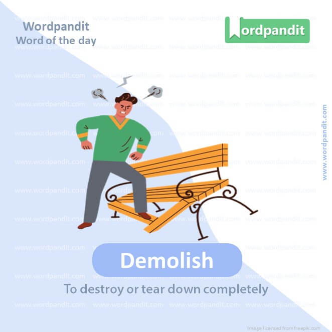EXPLANATORY PARAGRAPH: Demolish is like when you’re playing with building blocks, and you knock down the tower you just built. It means to break something into pieces or tear it down.